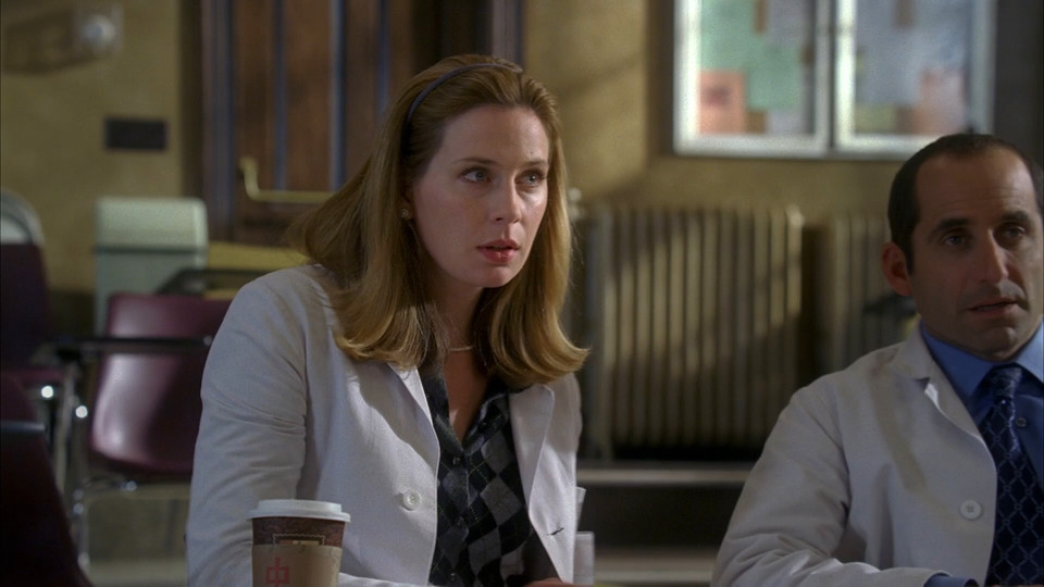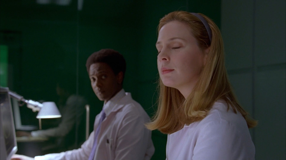 Когда смотрел в первый раз, не обратил внимания, что расклад сил по умениям у врачей очень разный. Эмбер сверкает на первом плане за счёт активности и перебирания вариантов. Она пристраивается к уже готовым версиям, напрасно не рискует и вообще гораздо реже должна оказываться в кадре, чем другие, если по справедливости.