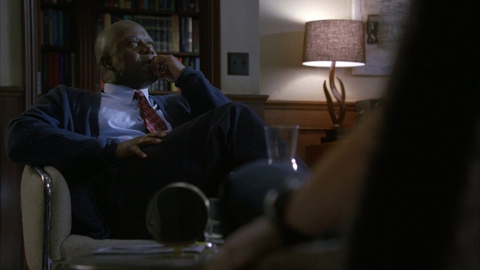 Здорово сделали совмещение разговора в кабинете психиатра и событий, о которых в этом разговоре и идёт речь. Хотя после первого перехода уже ожидаешь таких ходов в дальнейшем, но они всё равно были неожиданными.
